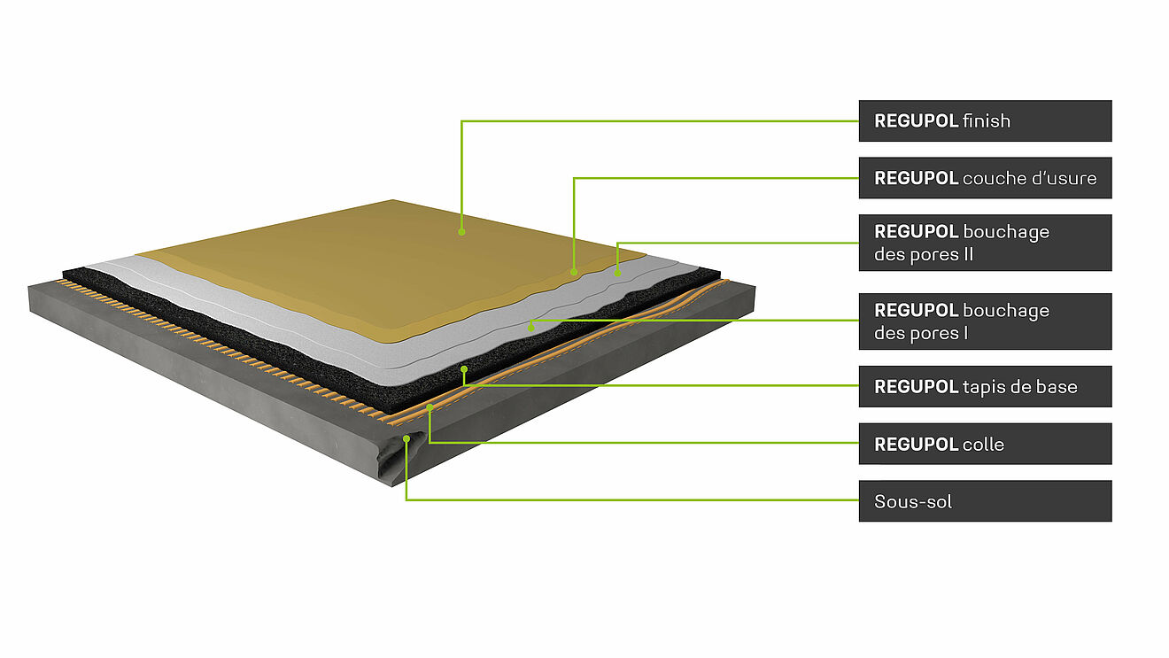 Notre revêtement de sol REGUPOL dynamic inline a été spécialement développé pour le roller en ligne dans les salles de sport. C'est en raison de cette utilisation dans des salles polyvalentes que REGUPOL dynamic inline est doté d'un tapis de base plus rigide d'une épaisseur de quatre millimètres. Tout comme la couche élastique, le revêtement en polyuréthane est plus rigide et robuste que pour nos autres revêtements sportifs. Ainsi, ce revêtement de sol pour les salles de sport et polyvalentes satisfait les exigences du roller en ligne. Bien qu'il se prête surtout aux sports sur roulettes, REGUPOL dynamic inline peut aussi être utilisé pour les sports de ballon et d'autres sports en salle.