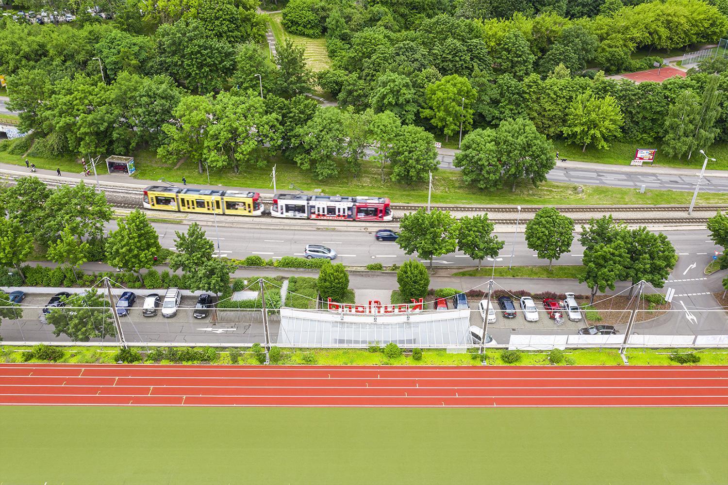 Le terrain de sport installé sur le toit du magasin de grande distribution Kaufland est un merveilleux exemple d'activation durable des toits en zones urbaines. La « cinquième façade », souvent négligée, offre un énorme potentiel pour accueillir des équipements urbains tels que des terrains de sport et de jeux ou des crèches, tout en économisant des ressources et de l'espace.