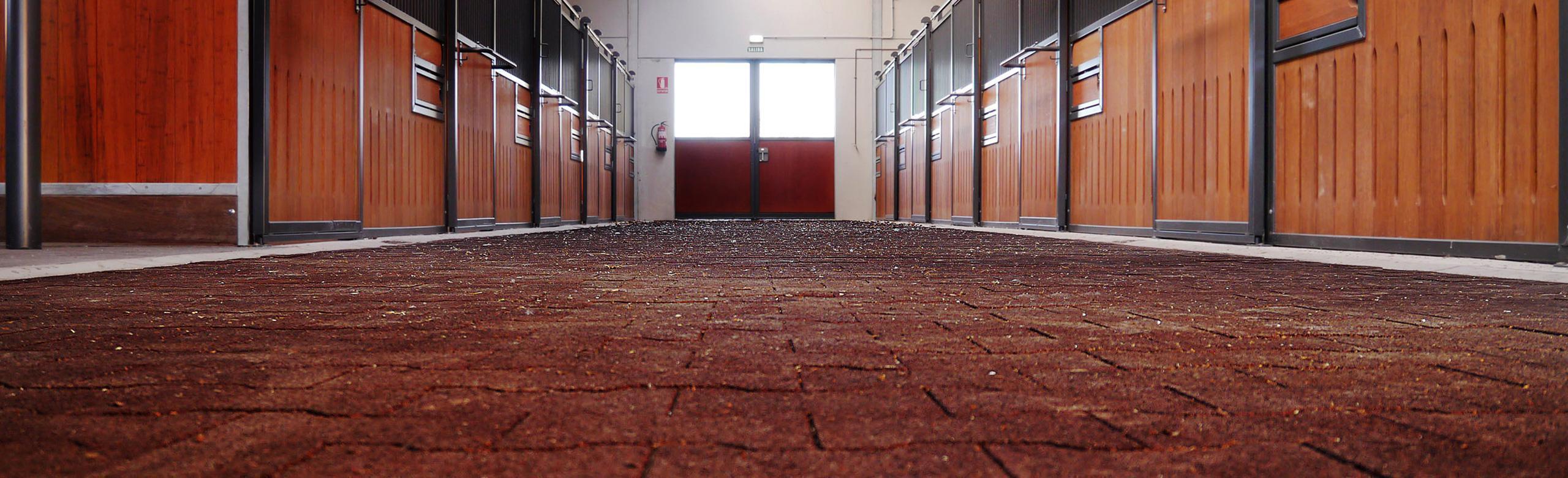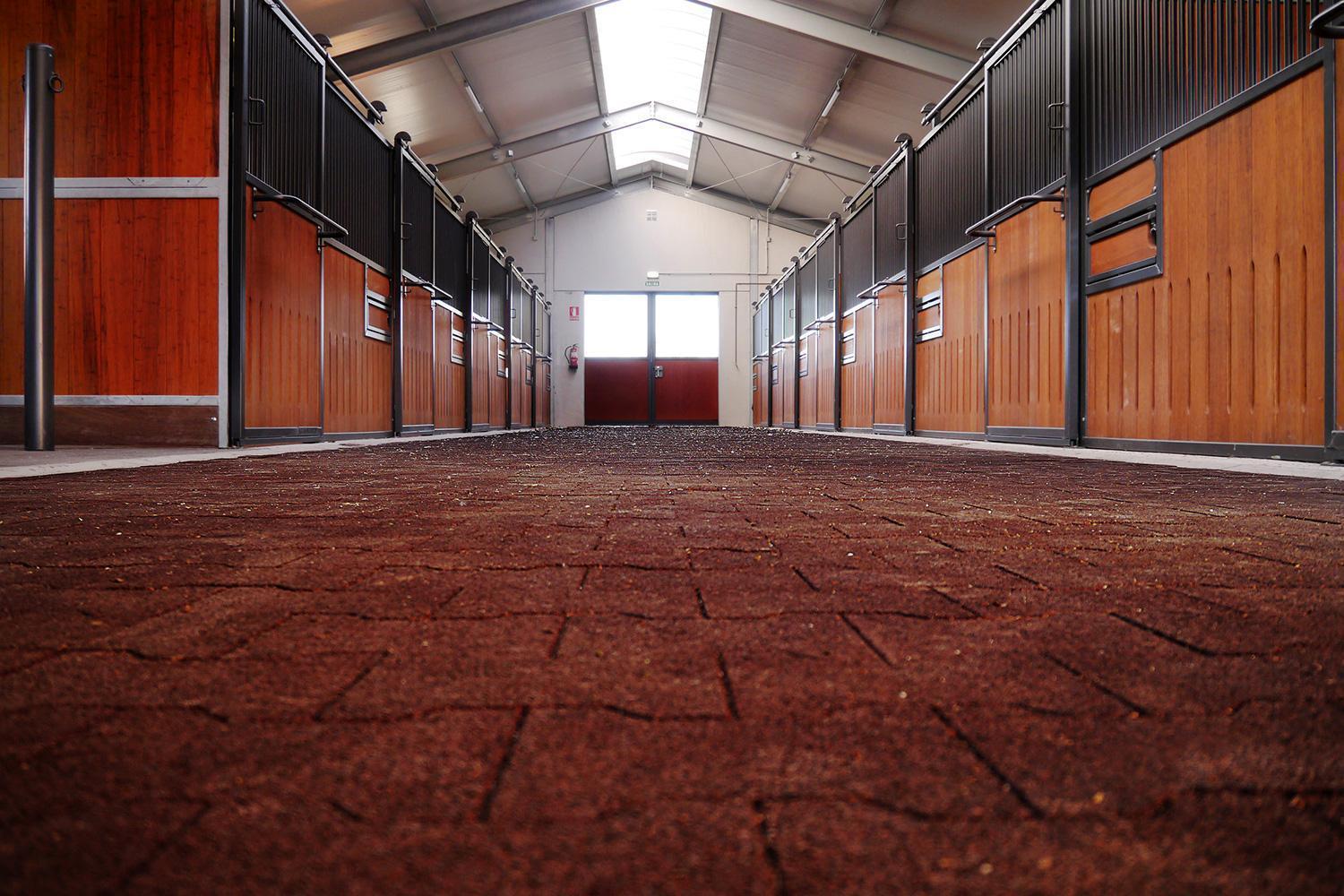 Finca Maeza utilise nos pavés autobloquants REGUPOL equiline walkway pour son couloir et son marcheur. Un bon choix pour les chemins empruntés par les animaux, car le matériau élastique du pavé autobloquant amortit les pas des animaux, assurant ainsi un environnement calme. De plus, il ménage les articulations des chevaux. Extrêmement stable et facile à nettoyer, notre pavé autobloquant REGUPOL est donc ici parfaitement à sa place.